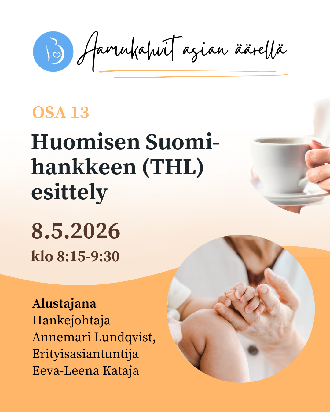 Aamukahvit asian äärellä on Suomen Perinataalimielenterveys ry:n ammattilaisille suunnattu koulutussarja. Toukokuussa 2026 aiheena on Huomisen Suomi-hankkeen (THL) esittely. Webinaari 8.5.2026 klo…